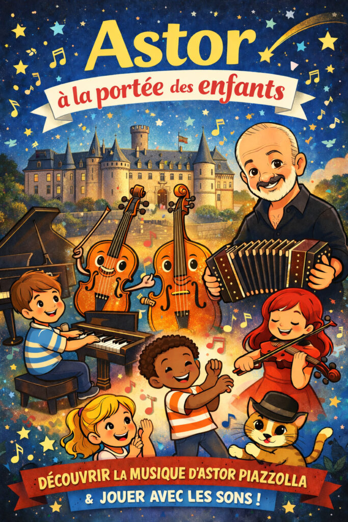Astor à la portée des enfants est un projet artistique et pédagogique qui favorise l’inclusion scolaire par la musique vivante. Il propose une découverte ludique et sensible de la musique d’Astor Piazzolla, adaptée aux enfants de maternelle et de primaire.